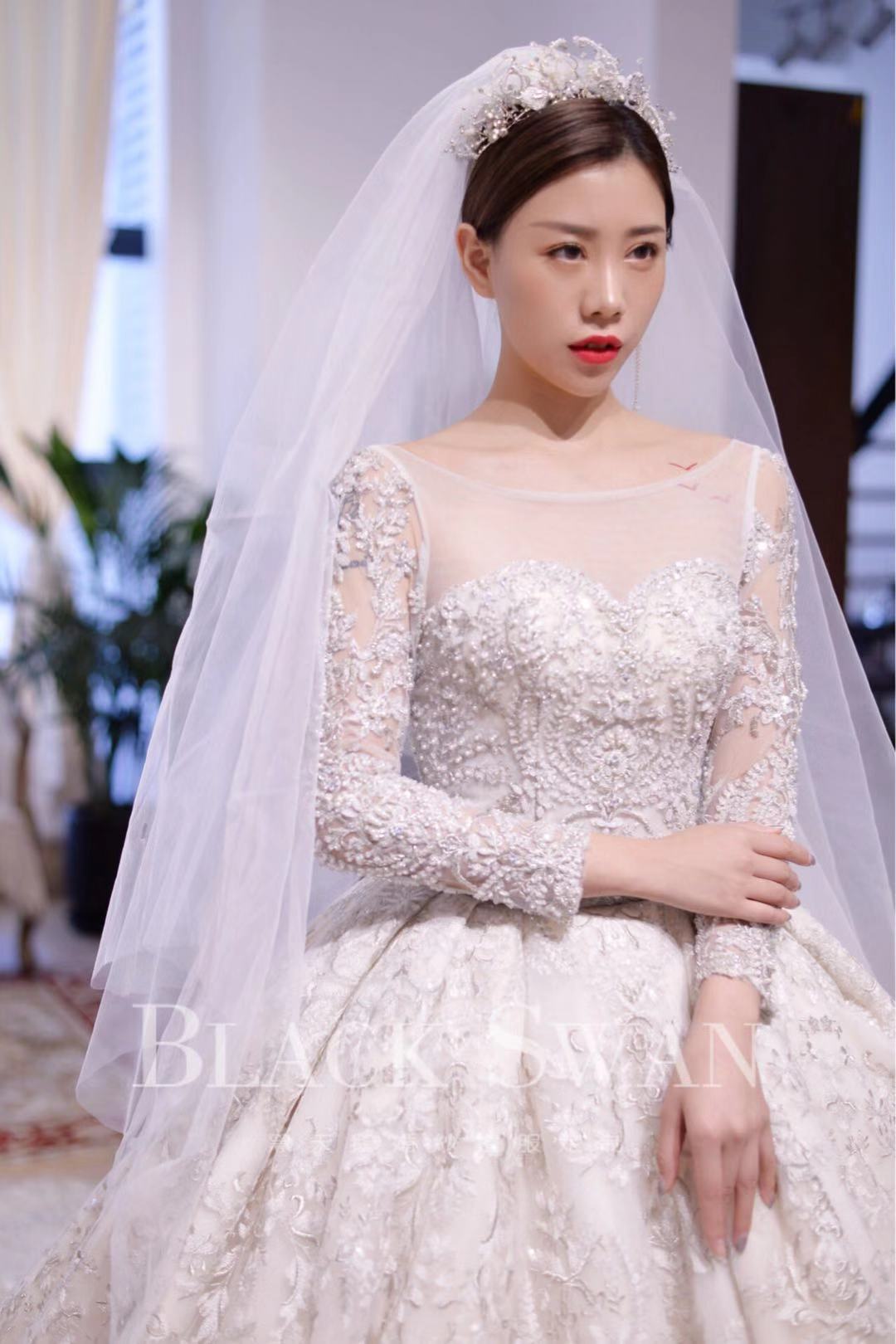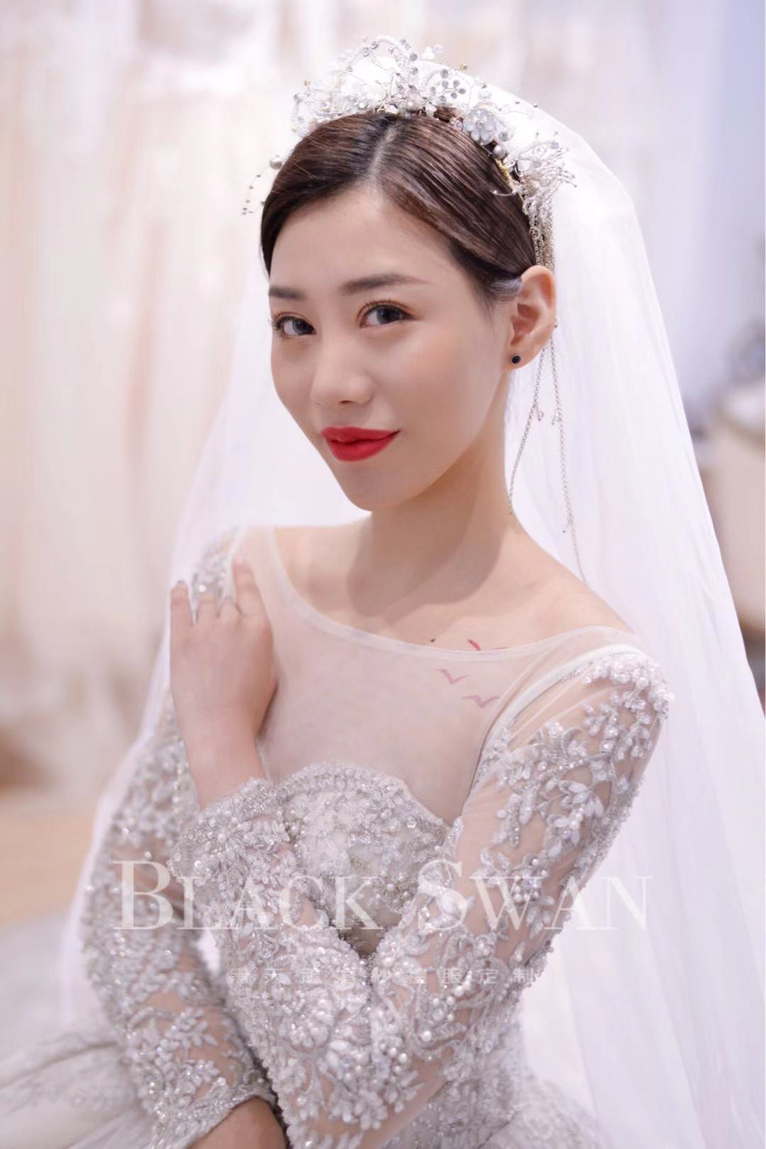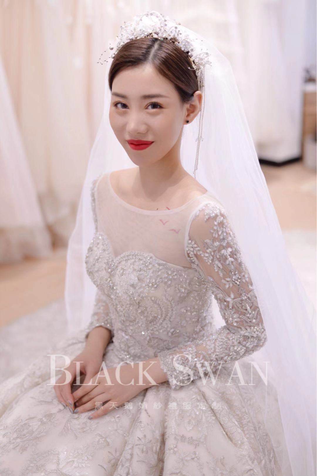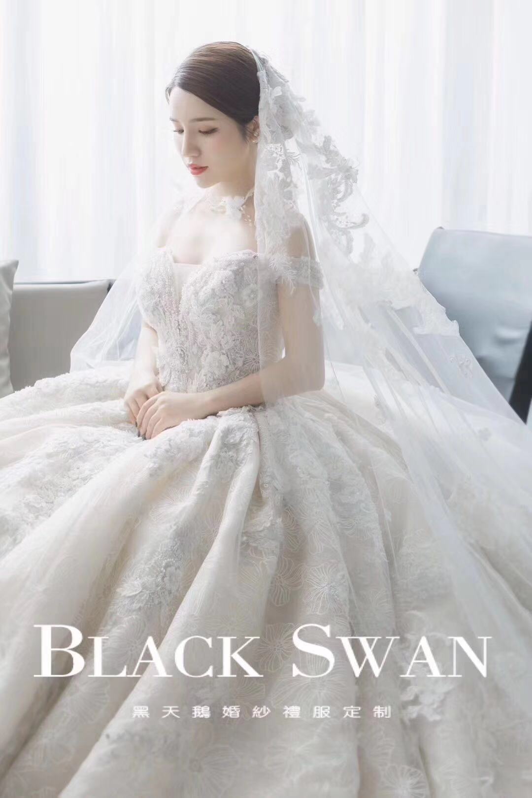 手推盘锦绣秀禾/定制款齐地婚纱一件<br />韩国轻主纱一件<br />设计师定制款礼服一件<br />