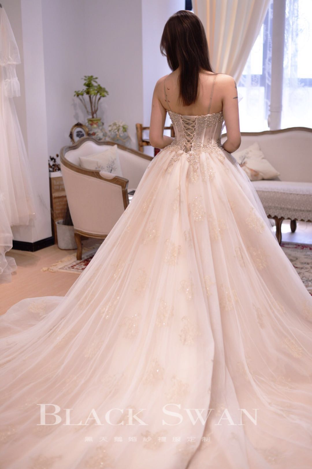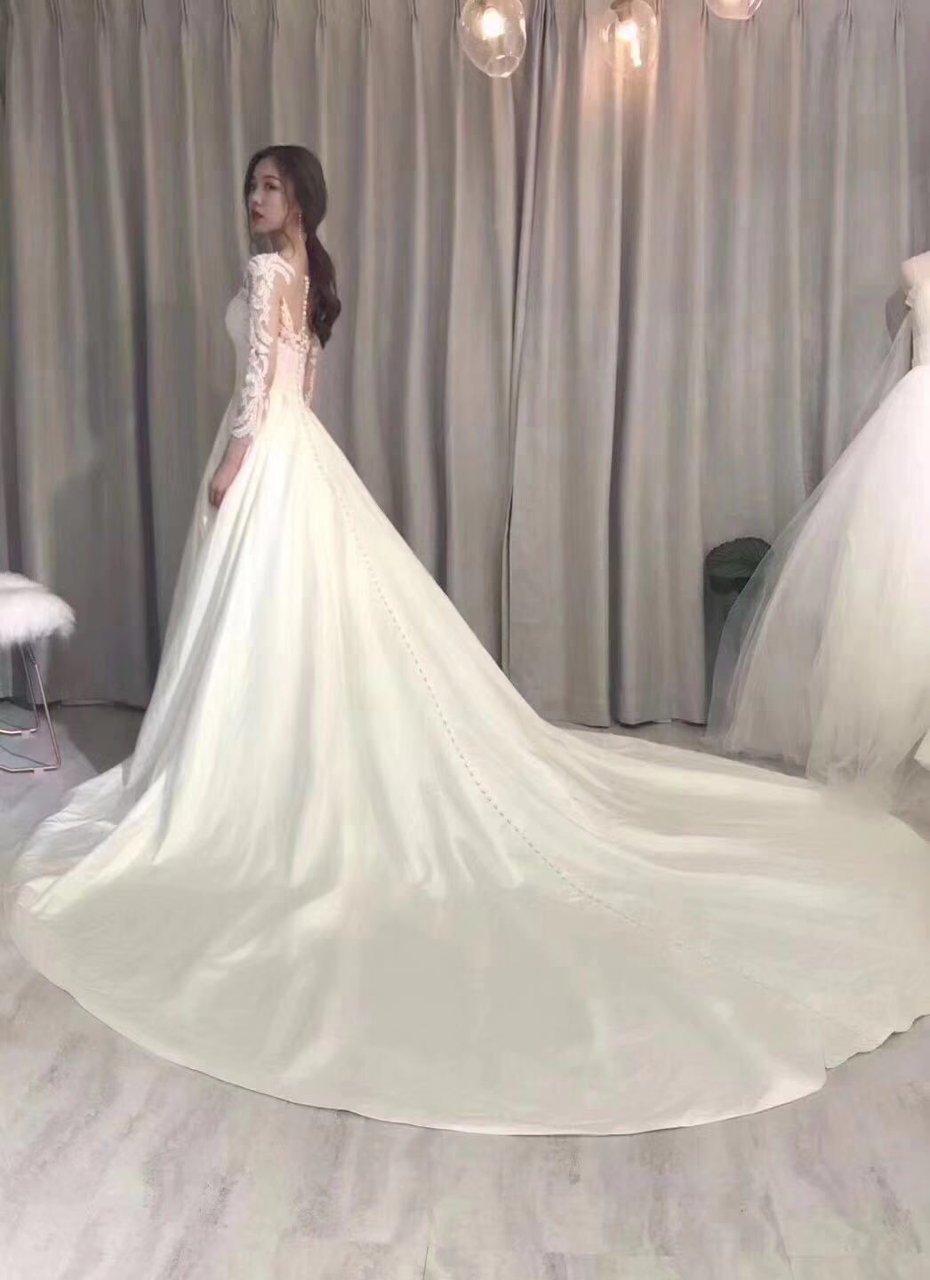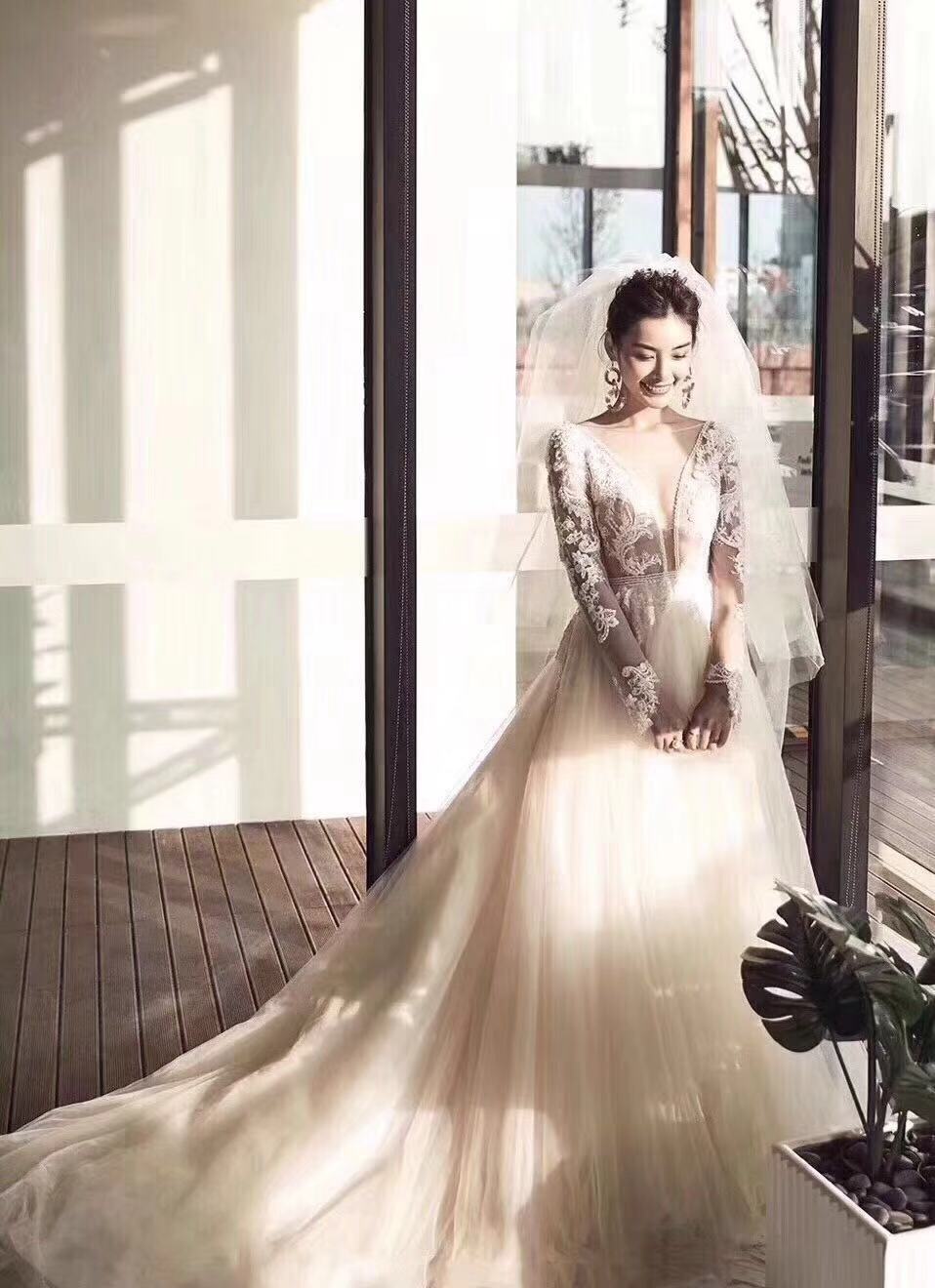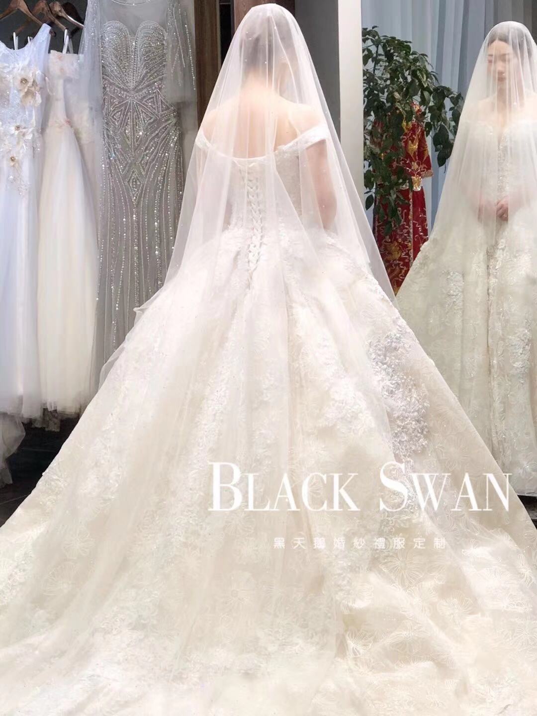 手推盘锦绣秀禾/定制款齐地婚纱一件<br />韩国轻主纱一件<br />设计师定制款礼服一件<br />