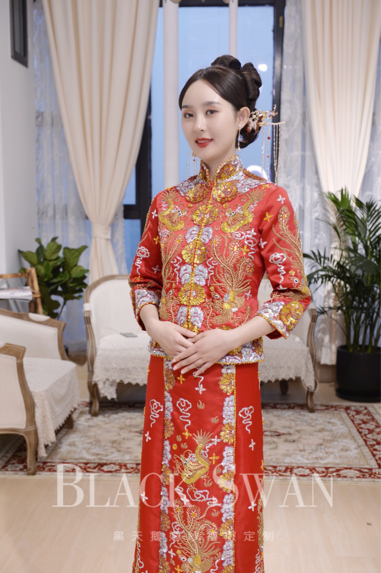 出门秀禾服,也可换做齐地婚纱,迎宾也可使用,无需再换一套迎宾纱 韩国轻仪式婚纱,细节精致,手工定制 伴娘服数量不限
