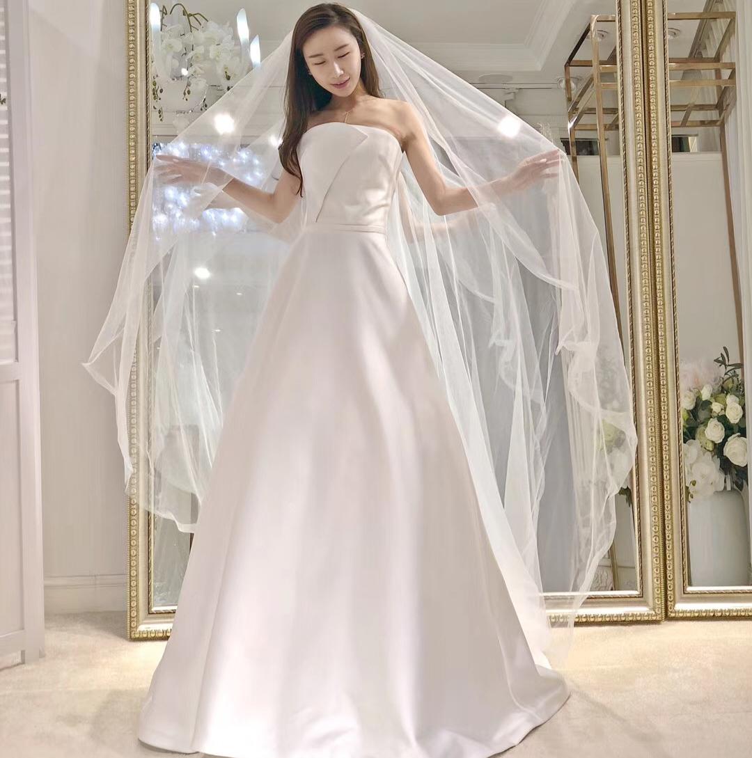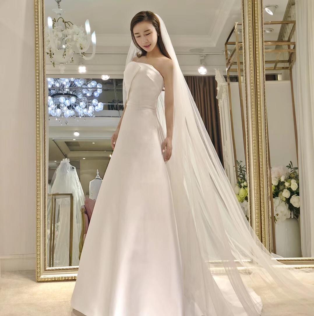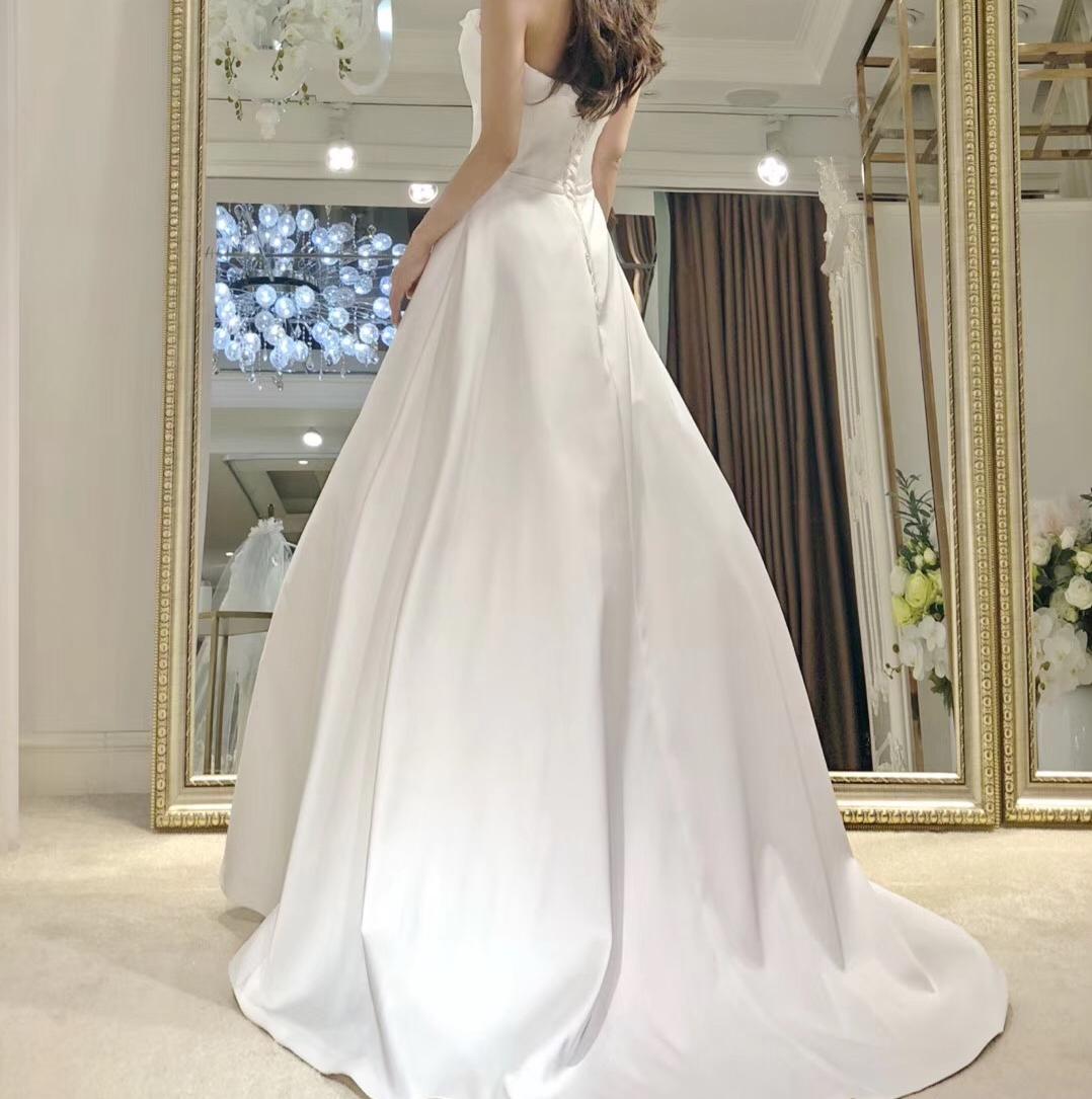 台湾珍珠缎面抹胸婚纱,适合骨架小、娇小可人的女孩子