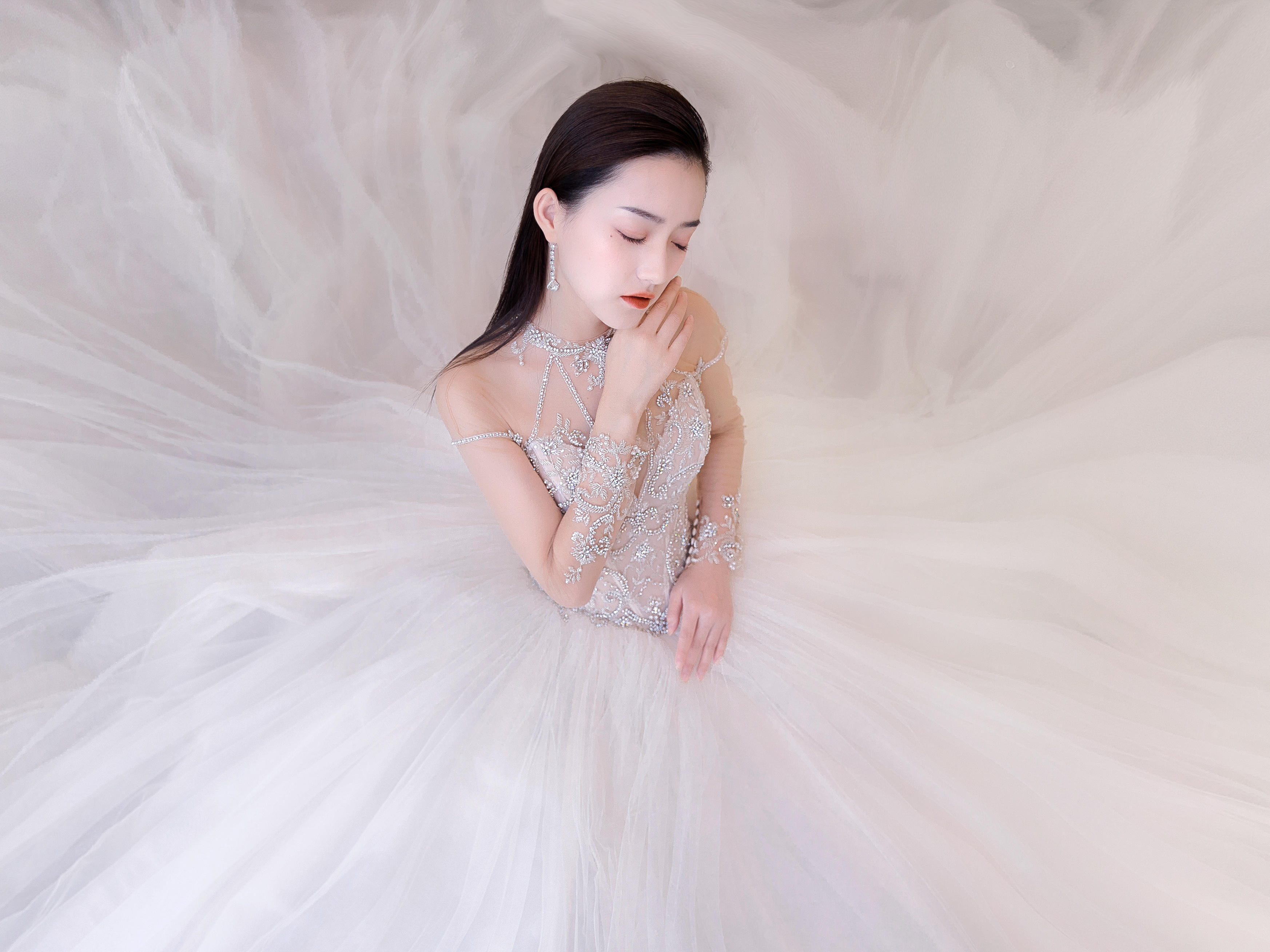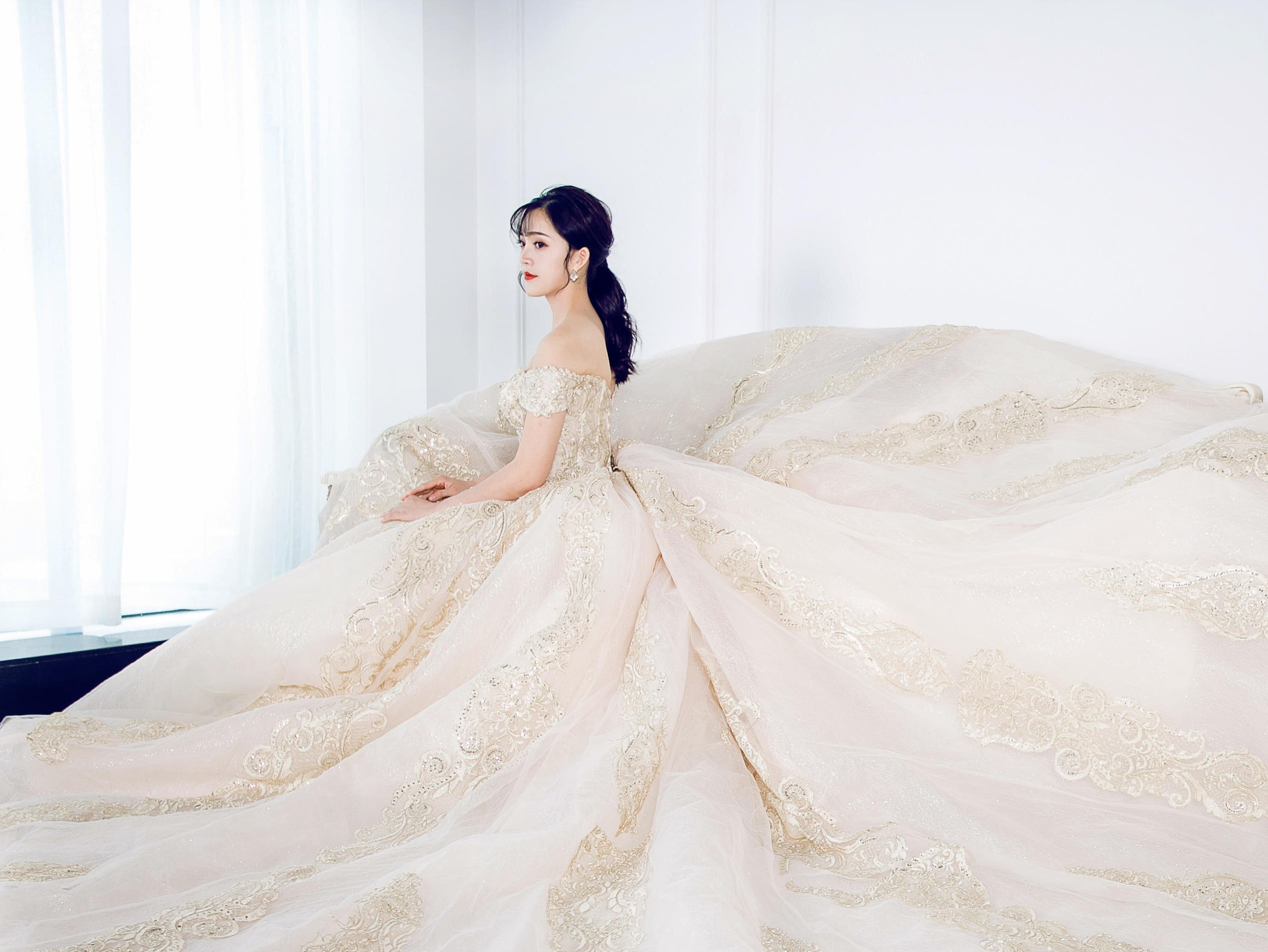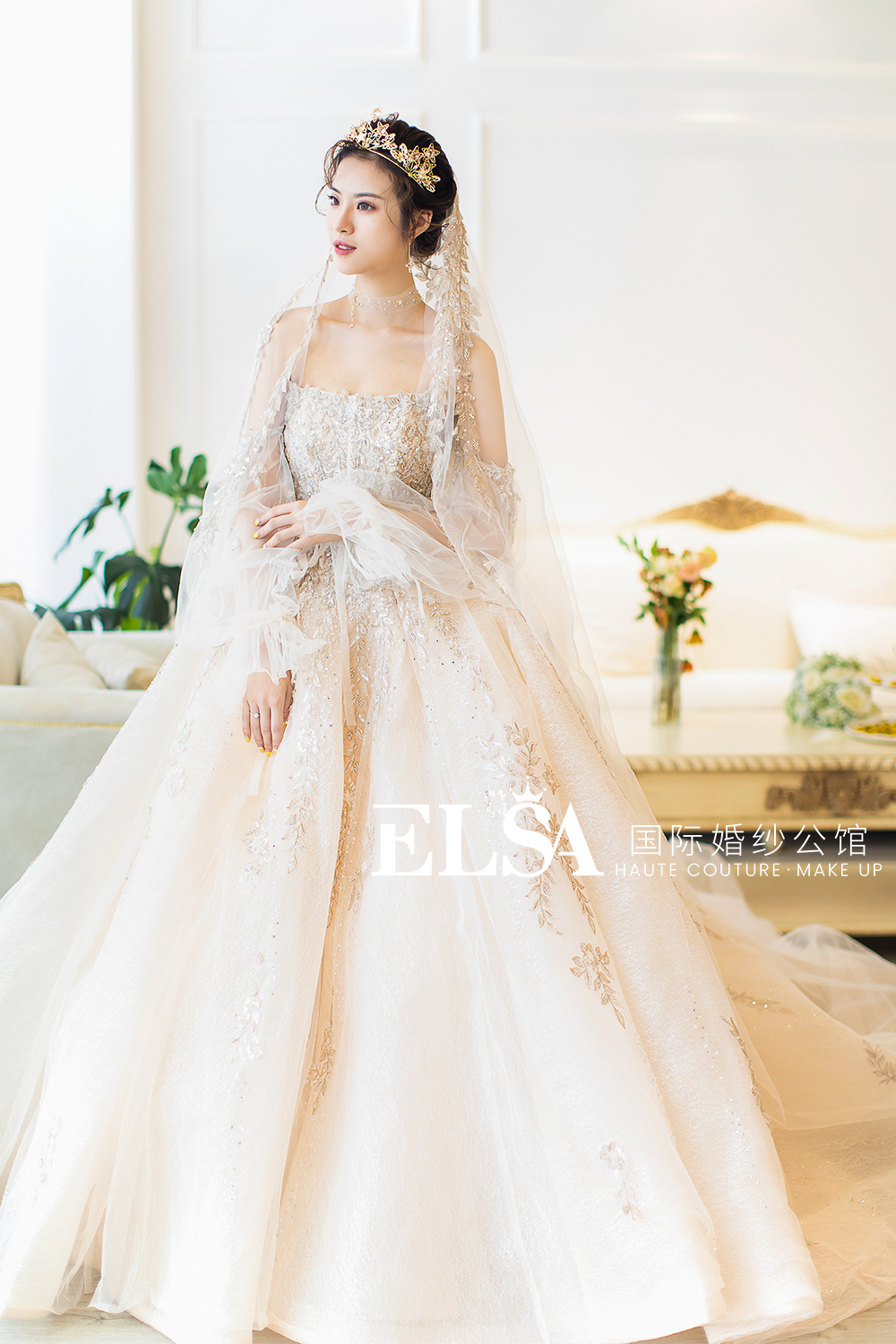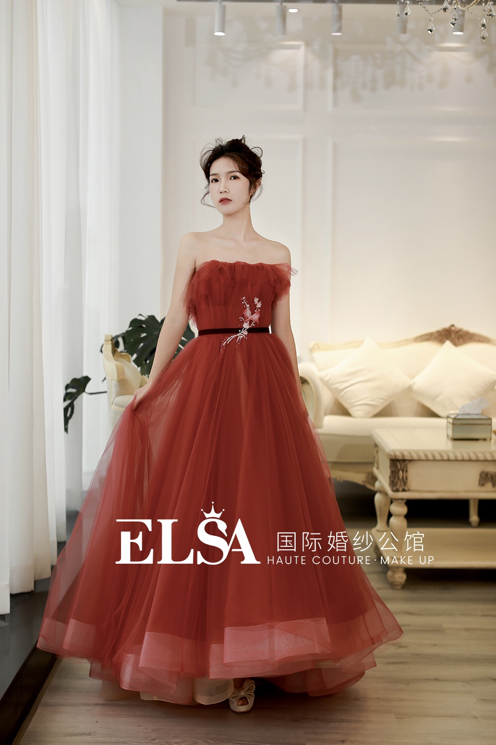 价值2680的首席跟妆服务 价值5280元的高级系列三件套租赁 设计师品牌出门纱一件/高定中式一件 设计师品牌轻奢大拖尾一件 设计师品牌高端晚礼一件