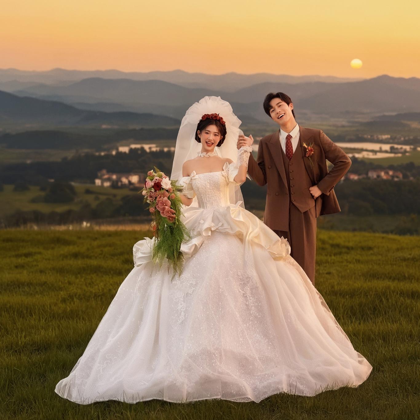 “婚纱照在我们心里和婚礼一样重要,都是满满的仪式感,所以我们两口子挑了好久,我们提前从平和到他们工作室看了,对比起来他们的风格就是我们要找的,再加上他们是私人摄影工作室,风格独一无二,最终就选择他们了,拍出来超级满意