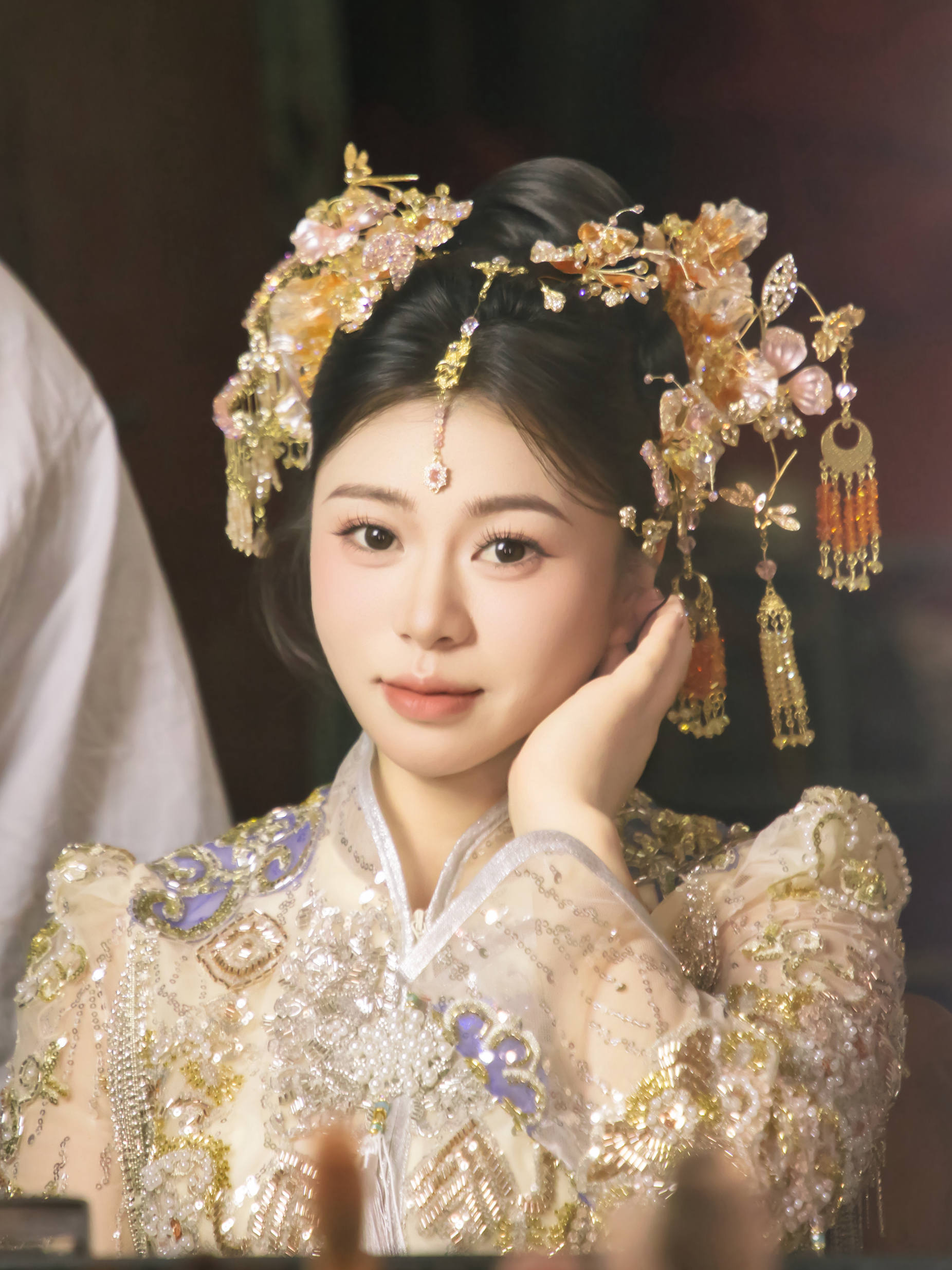 “化妆师小姐姐太专业了。试妆的时候因为工作比较忙没好好护肤试妆当天就做了一个补水面膜再试妆的。试妆过程中也很贴心的给我讲我皮肤的问题,告诉了我好多日常化妆的小技巧,特别是婚纱的头饰我太喜欢了💕本来试妆的时候没有想着办婚礼后来老公家还是说要办婚礼前半个月才去定的婚纱。小姐姐怕没得合适的头饰带了好几个给我试,这个是我最喜欢的。贴心的化妆师小姐姐。宝子们!!!!冲吧!!!