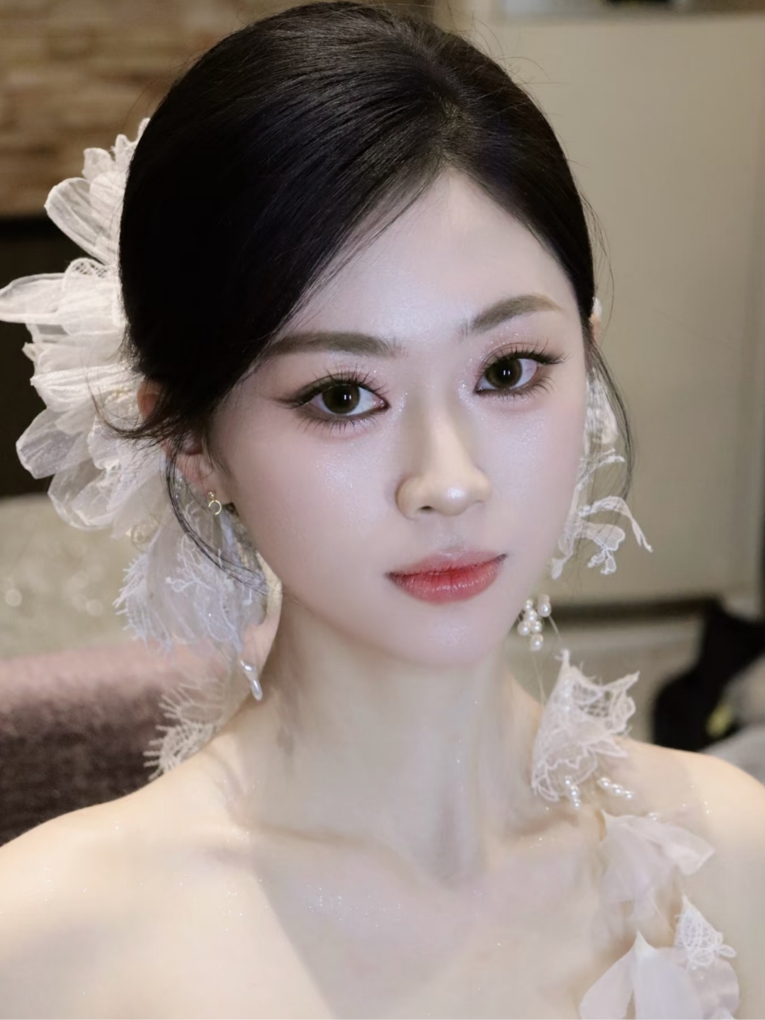 “化妆师很专业,试妆的时候皮肤有些干燥化妆师细心的给我湿敷后妆容清透干净全程很贴心。我回去后自己按照化妆师每天做面膜婚礼当天妆容很持久。强烈推荐