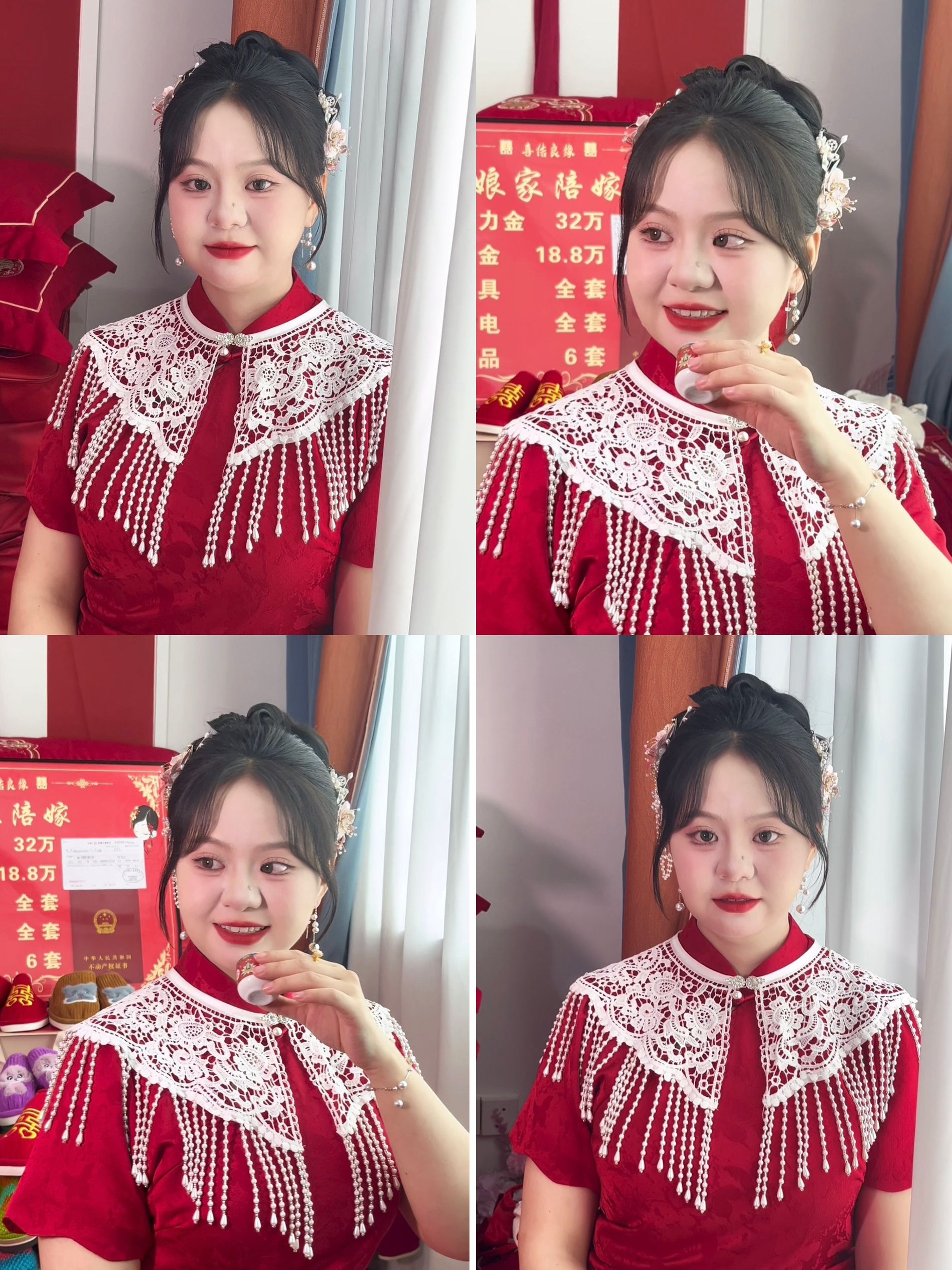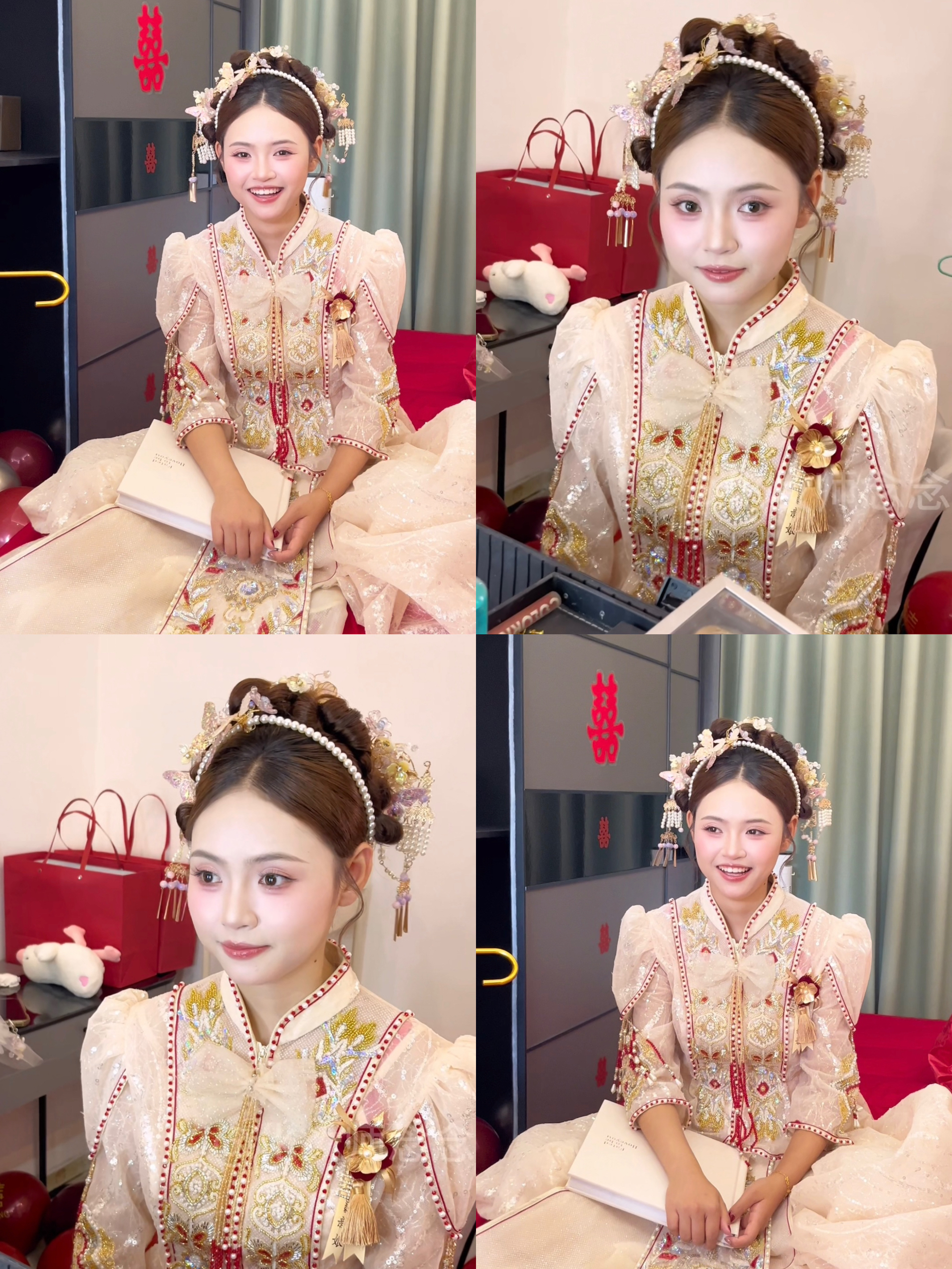 “新娘子很爽快,还没有试妆就预定了,三服三造,谢谢新娘的信任🥰🥰🥰