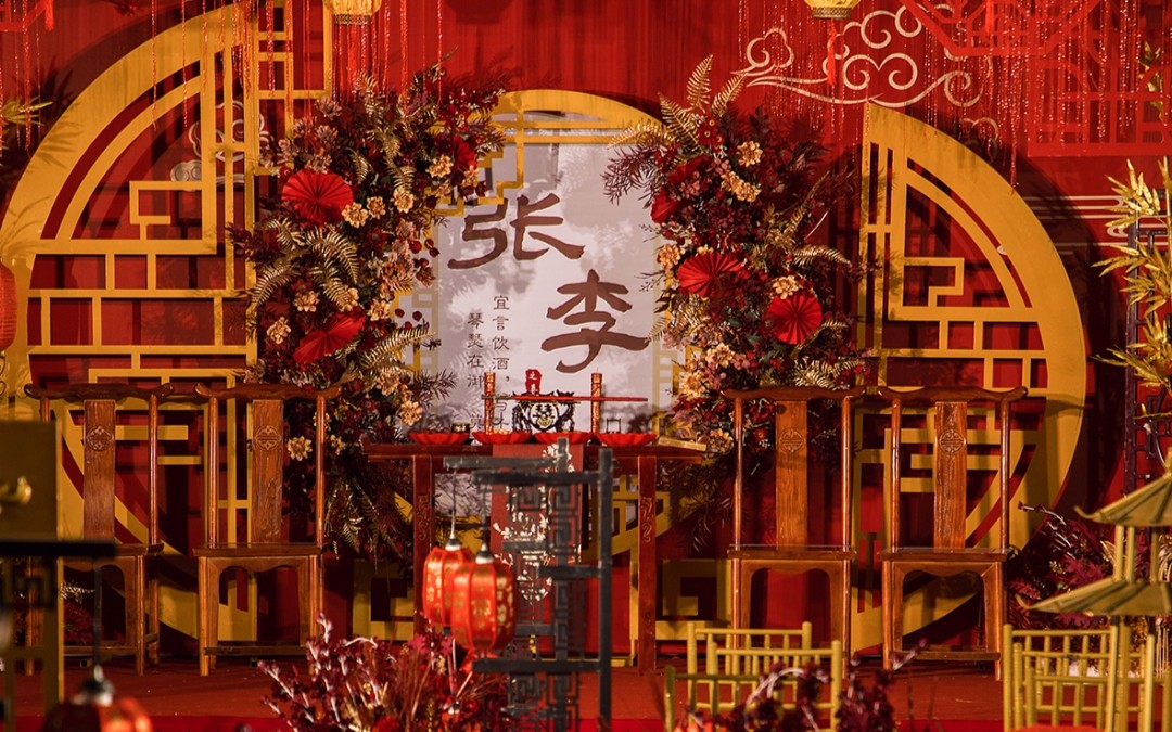 酒店.仪式感超强复古中式婚礼.含舞台吊顶四大