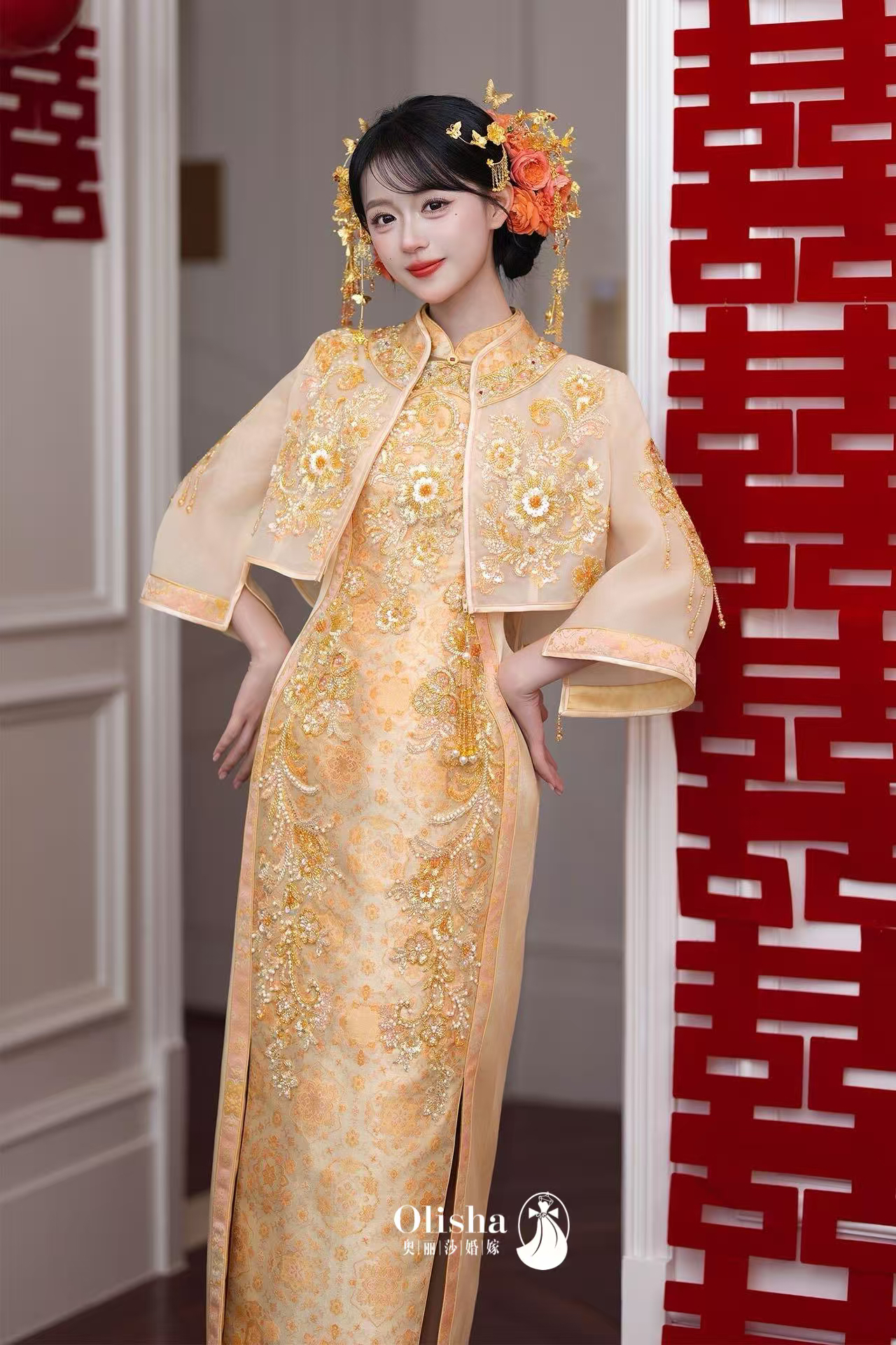 “寻觅了一个多月,对比了N家,终于有那么一家,啥啥都让我满意的婚纱店了。整场婚礼办下来后,除了那么个小状况外,没啥不满意的。就我整场婚礼下来的体验做了个总结。 1. 主纱:bulingbuling的款式,拍照真的超容易出片。浅浅的香槟色,也很衬肤色。搭配场内布置,很Nice! 2. 外拍礼服:选的修身鱼尾前摆带开叉的那种,拍照也是绝绝子,显身材,还显腿长😎 3. 嫁衣:本人不是很喜欢太夸张的秀禾,所以选的取中的款式,效果看图,谢谢小姐姐,还给我搭了把扇子拍照用。 4. 敬酒服:今年超火的法式款,本以为会显架子,结果真的出乎意料,显高 显瘦 显腿长,如图,可惜了,没时间拍照。 5. 伴娘服:裸色的吊带一字肩款,真的好仙,腰带值得我一夸,点睛之笔。配上伴娘的颜值,完美! 6. 试纱体验:店铺小姐姐们都好热情呀,一番沟通下来就能知道我想要的类型款式。然后便很耐心的推荐,整个环节下来,花了3小时左右。小姐姐不辞辛苦😉的取下拿上,真的很累。主要是都没推荐错🤩,所以,小姐姐们,辛苦了。感谢你们的推荐,也感谢你们的婚服,让我的婚礼画上了完美的句号。以上是我的个人实际感受,可供有需要的仙女们参考。