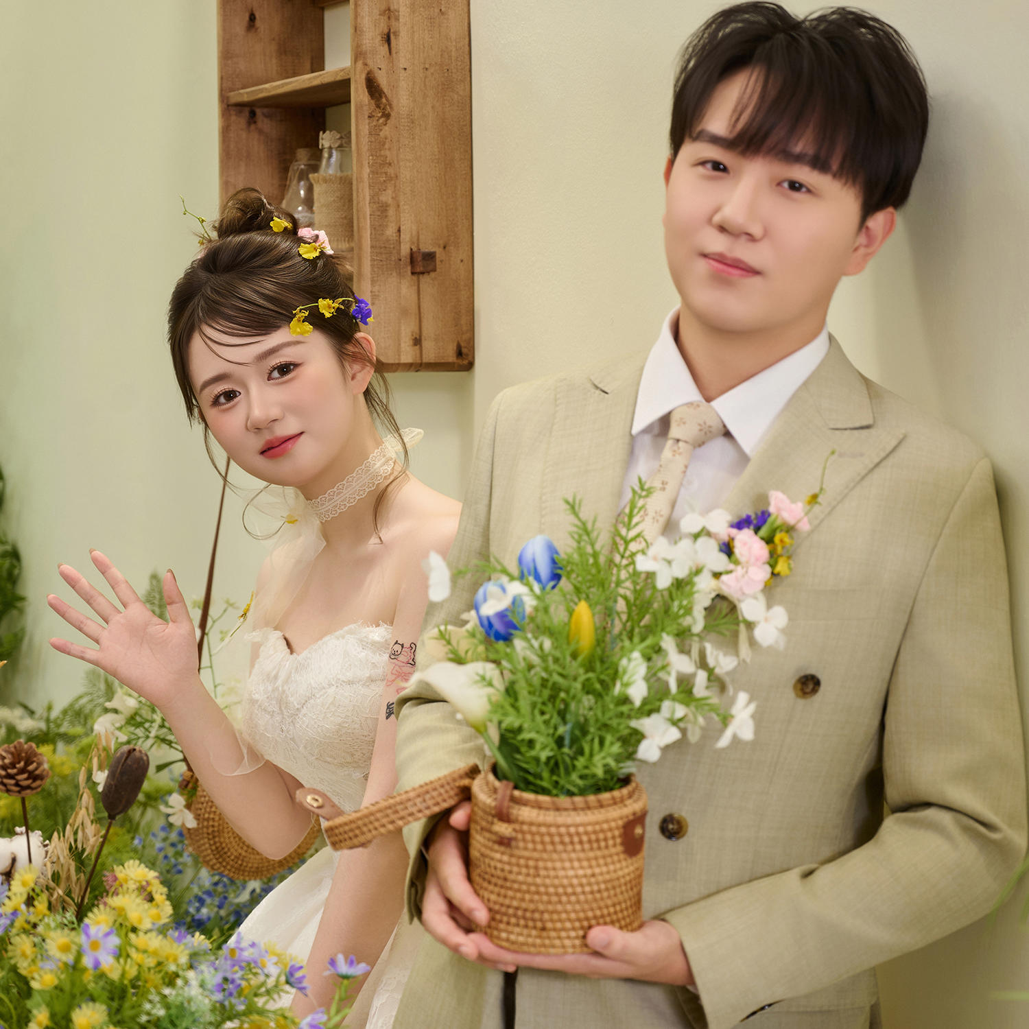 “ 婚纱照拍摄时,化妆师小姐姐非常周到,一对一为新人挑选服装和造型,拍照时全程陪伴,给新人补妆擦汗。摄影师技术熟练,耐心指导,用言语调整及时引导新人,让他们很快进入状态,避免长时间保持一个姿势。整个拍摄过程中,团队的服务也非常棒。