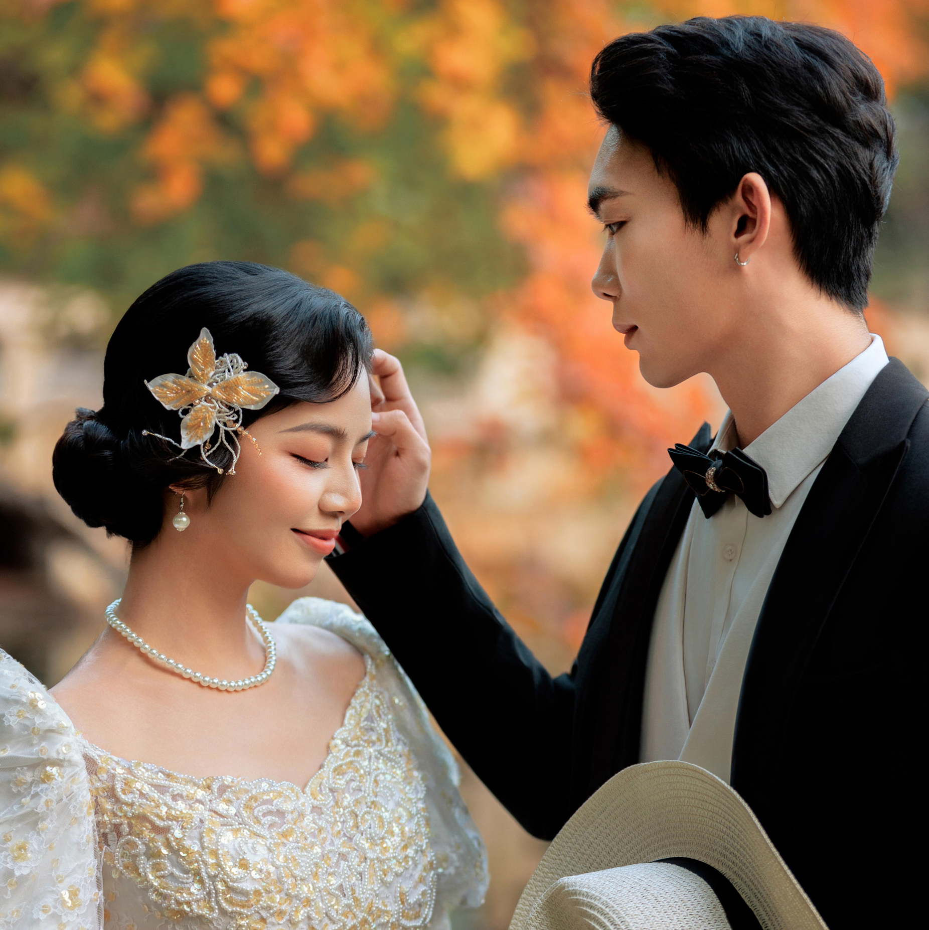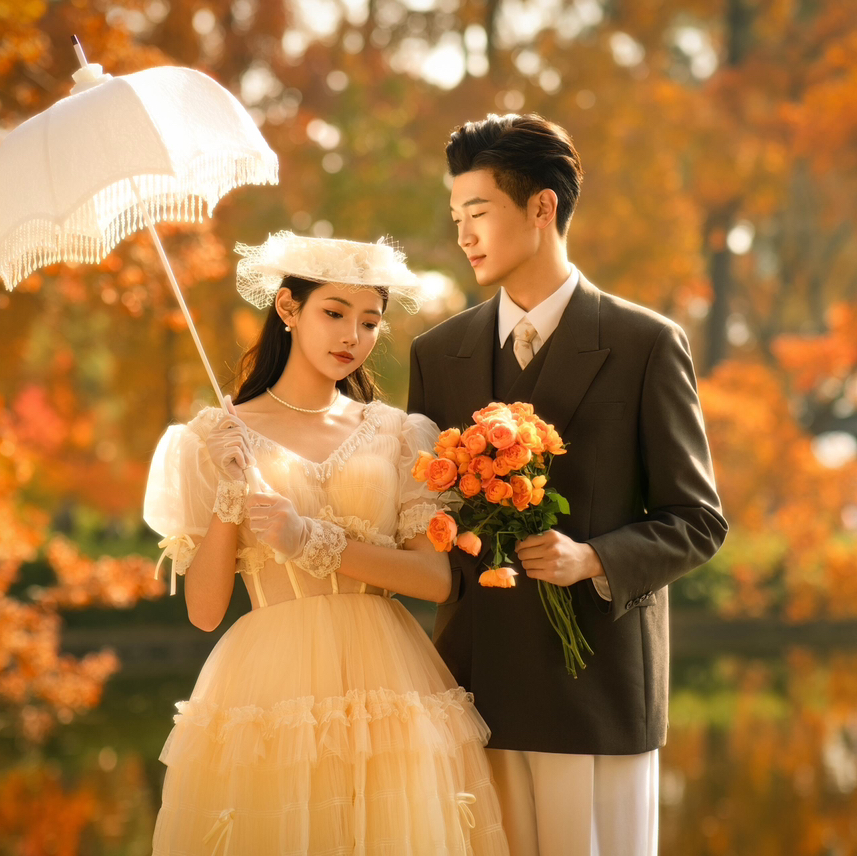“早上八点半准时到店,梦梦老师早已在化妆间等候。梦梦的手法超级细腻,底妆清透自然,眼妆精致又不浮夸,每套造型都完美契合拍摄主题。特别是外景的那组鲜花造型,连路人都忍不住夸赞! 阿杰老师提前和我们沟通了拍摄想法,耐心引导两个拍照小白的我们。从室内棚拍到外景,每个场景都精心设计。阿杰很擅长捕捉自然互动的瞬间,当我们紧张时他会用幽默话语逗我们放松,拍出的照片既有唯美大片感,又充满甜蜜的生活气息。 🌹 拍摄感受分享: 一整天的拍摄完全超出预期!梦梦全程跟妆,随时调整发型和补妆,连一根发丝都不放过。阿杰老师对光影的掌控绝了,在夕阳下的那组剪影简直封神!最后看原片时我们就惊喜不已,很多照片根本不用修就已经很美了。