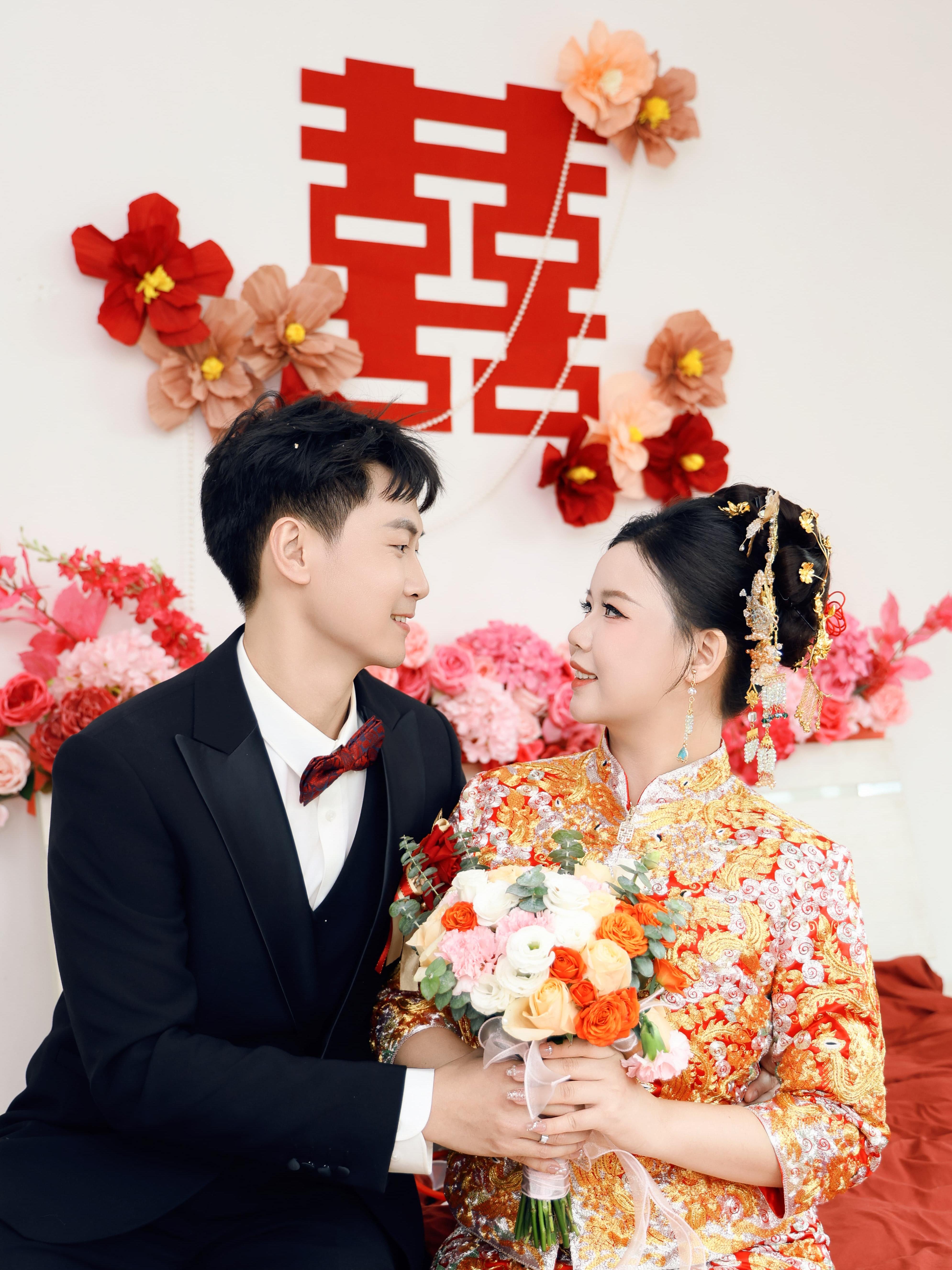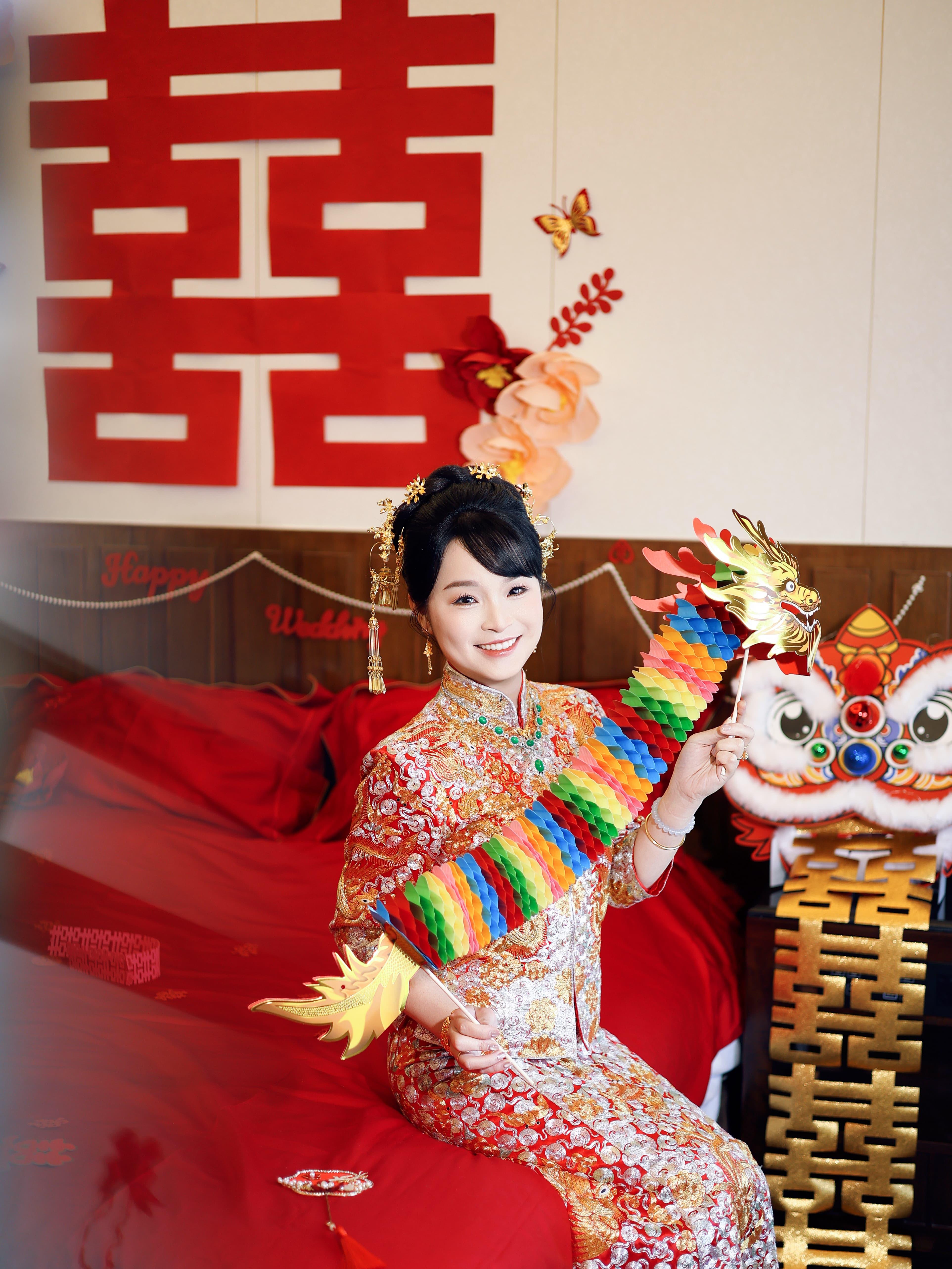 “礼成! 比心美女化妆师宝宝,英文名不会读,哈哈哈,有她在整个化妆过程都很开心,而且很专业的给出发型的建议,原来我自己上网找的发型不适合,临时换成裙褂出门也马上配合。 摄影录像两个小哥哥也超会搞烂gag,本来都是内敛的姐妹团本性暴露了[捂脸]。婚礼后一天就收到你们的预告,感谢么么哒